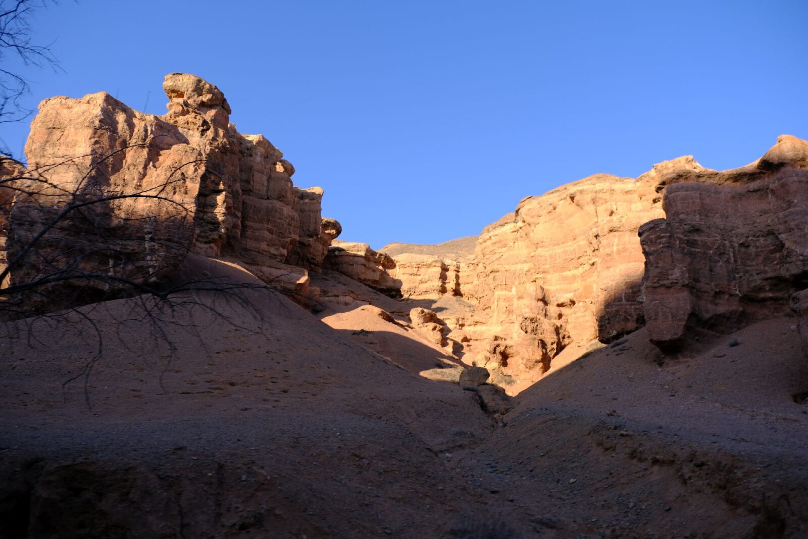 By early afternoon, the landscape began to change. The terrain deepened into layered earth tones, and soon the vast expanse of Charyn Canyon revealed itself.