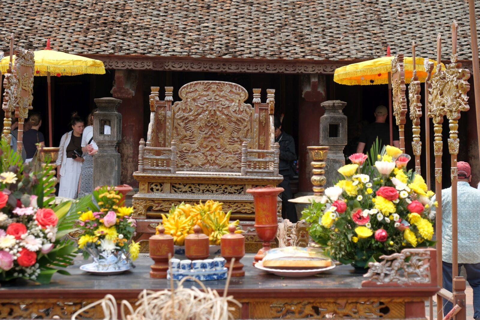 We were fortunate to be there in early April, when red silk cotton trees were in full bloom. Their vivid flowers punctuated the landscape, adding bursts of colour to the greens and greys around us. The entrance gate—with its traditional architecture—was instantly recognisable, a visual symbol of Ninh Bình.